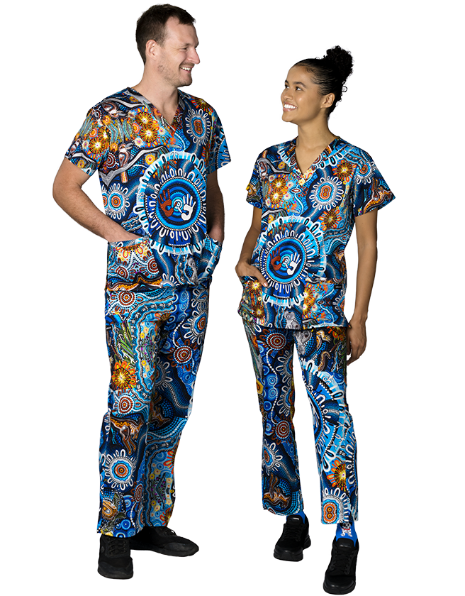 The different animals throughout the design represents the healing journey which is different for each individual and how each Nurse and patient is as unique and diverse as the many animals who call our land Australia Home. With the animal footprints representing the many patients from all backgrounds and walks of life who are treated by Nurses. Lastly the plants, flowers and leaves throughout the painting represent the native bush medicines and leaves which have been used for thousands upon thousands of years to treat many aliments and illnesses, this vital knowledge has been passed down through the generations.