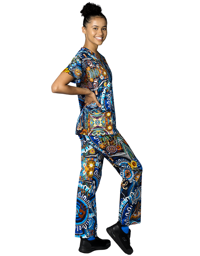 This beautiful artwork by Chernee Sutton is in the Yapatjarra Muu Kalkadoon language and is named “Healing Country”. This artwork has a deep history of healing and represents how connection between Aboriginal, Torres Strait Islander and Non-Indigenous cultures and how both cultures are in the healing stage, so we can all move forward together as one.