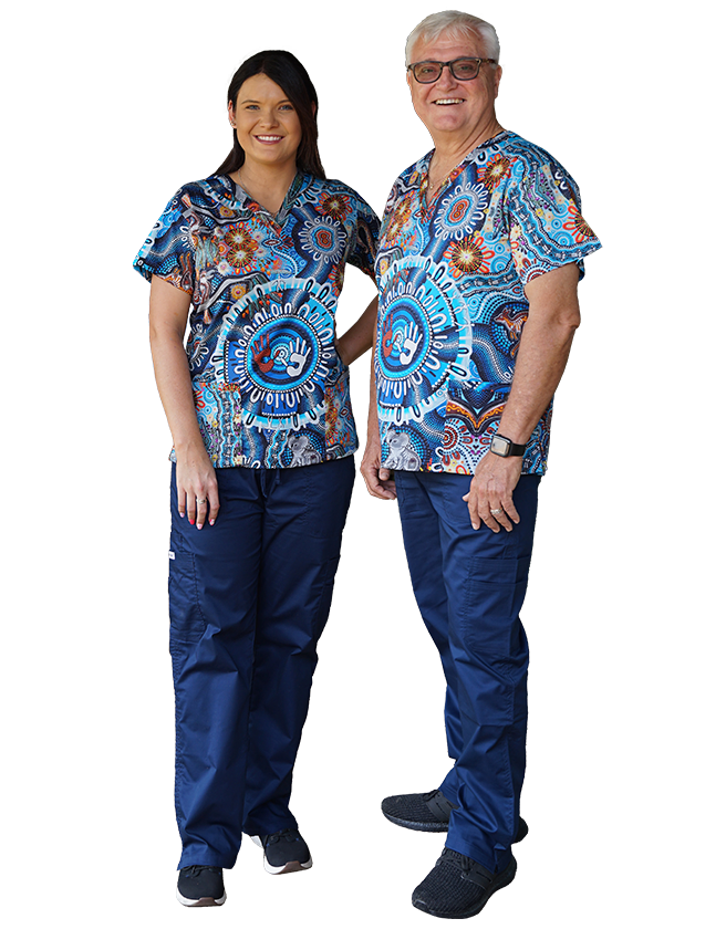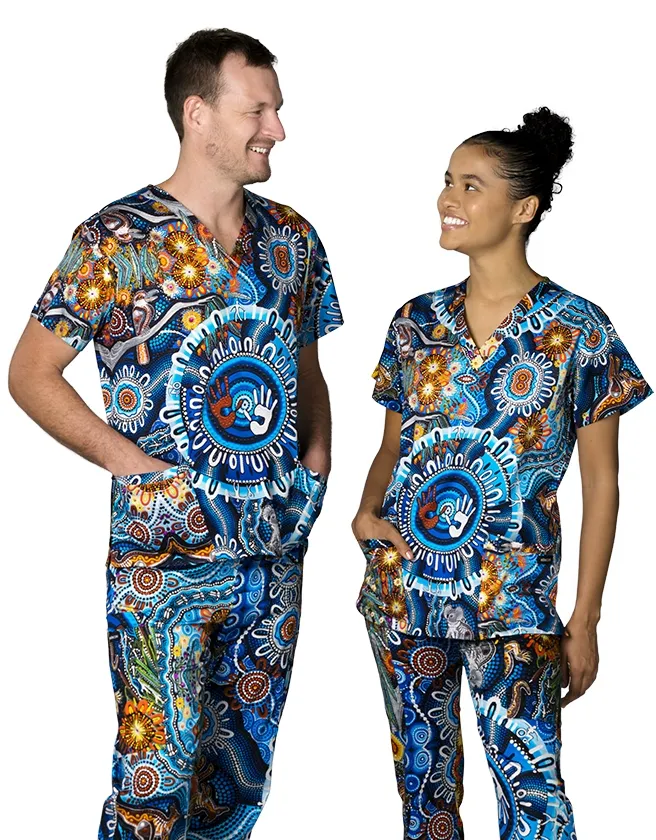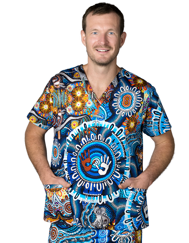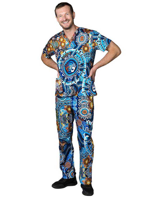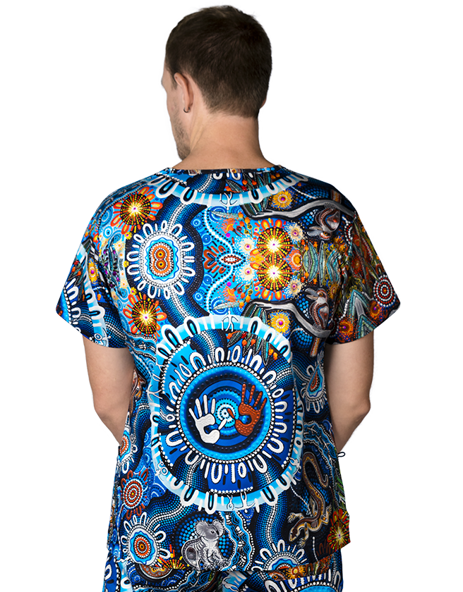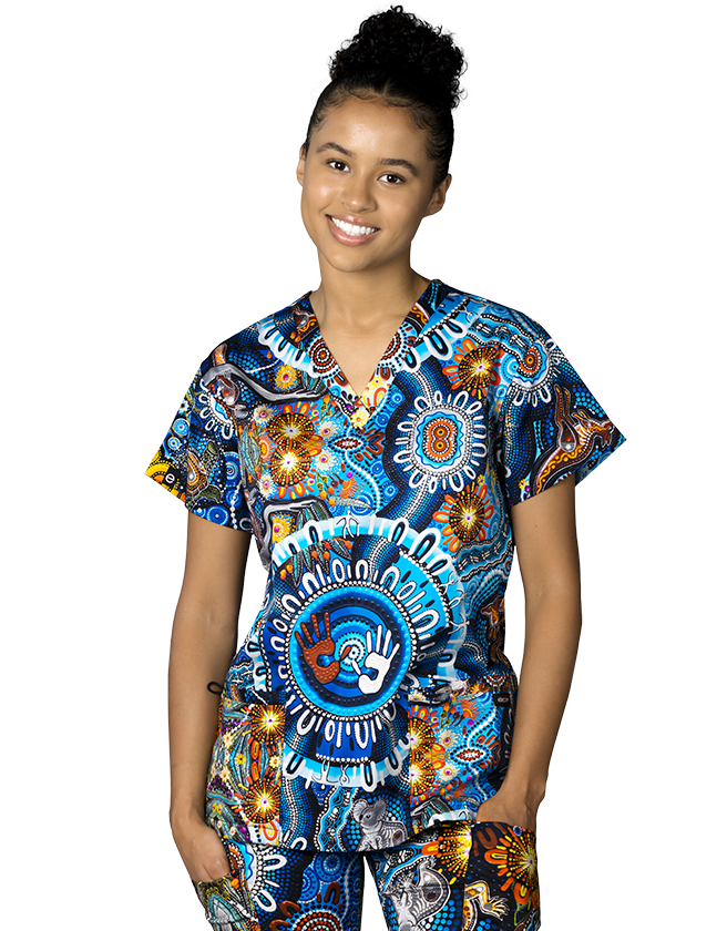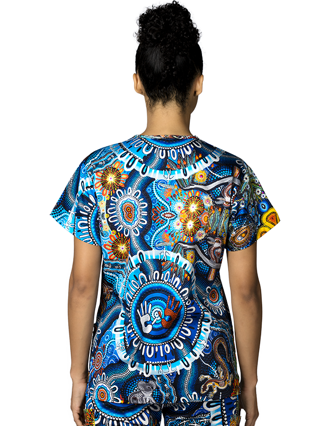The different animals throughout the design represents the healing journey which is different for each individual and how each Nurse and patient is as unique and diverse as the many animals who call our land Australia Home. With the animal footprints representing the many patients from all backgrounds and walks of life who are treated by Nurses. Lastly the plants, flowers and leaves throughout the painting represent the native bush medicines and leaves which have been used for thousands upon thousands of years to treat many aliments and illnesses, this vital knowledge has been passed down through the generations.