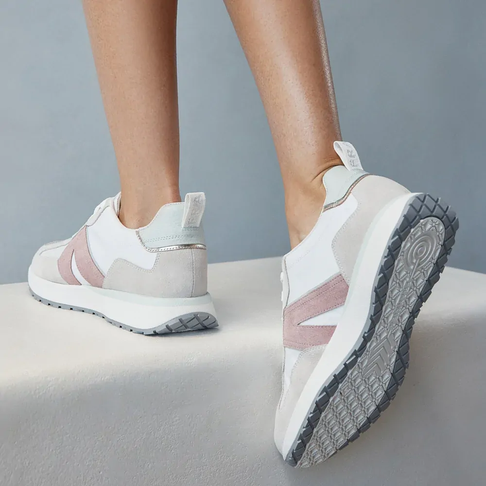 Cool, clean, and unstoppable: Axel in Glacier. Soft icy tones give this leather sneaker a modern, understated edge, while a triple-layered support and cushion system with precisely placed padding keeps every step comfortable. Axel’s wardrobe-redefining silhouette is crafted from a mix of performance textile, luxe leather, and suede, making it the perfect sneaker for work, weekends, or travel.