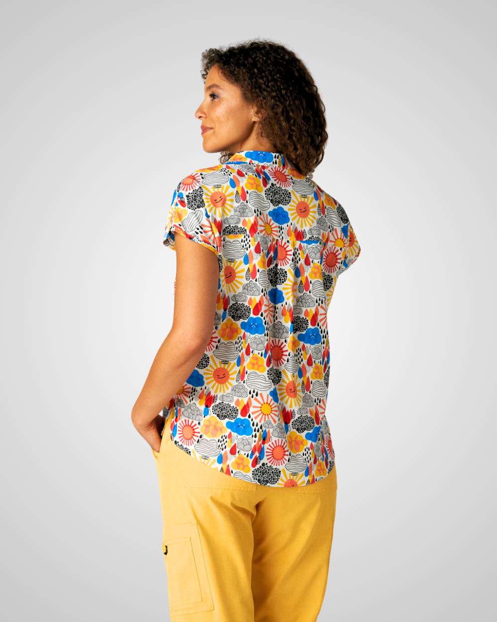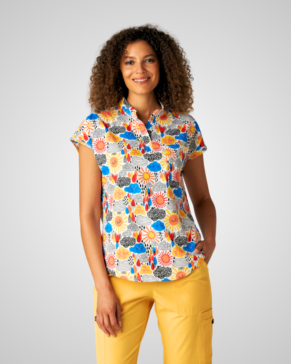 Bring joy and color to your workday with this limited edition scrub top from the koi Artists Series, designed in collaboration with surface pattern designer and illustrator Sandra Hutter. A former nurse, Sandra channels her passion for positivity into bold, feel-good prints that brighten any environment — and this piece is no exception!